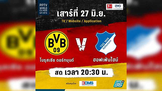 ล งก ด บอลสดบ นเดสล กา โบร สเซ ย ดอร ทม นด พบ ฮอฟเฟ นไฮม ตารางบอลว นน 20 ม ย 63 Pptv Hd 36 Line Today